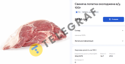 • Свинина лопаточной части: 229,59 грн/кг (акционная цена, без акции – 246,85 грн/кг)