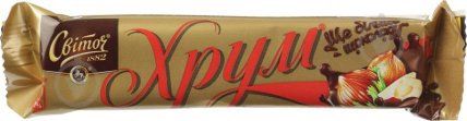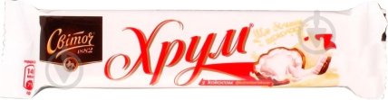 "Хрум" появился на знаменитой фабрике "Свиточ" во Львове — колыбели кондитерских традиций с 1882 года. Эти вафли были настоящей находкой: многослойная хрустящая основа с нежным кремом (лесной орех или кокос), щедро политая глазурью из натуральных ингредиентов. Особый секрет – в рецепте, где вафельное тесто пропекали до идеальной хрусткости, а шоколад делали густым, чтобы не трескался при первом укусе.