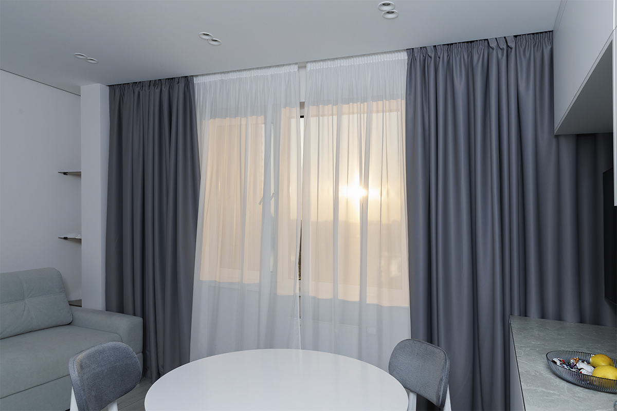 Кроме того, новые системы позволяют устанавливать автоматические механизмы, благодаря которым ткань можно открывать или закрывать одним нажатием. В результате стена становится более функциональной и удобной в использовании. Впрочем, также можно использовать обычный карниз и скрыть его за потолочной конструкцией.