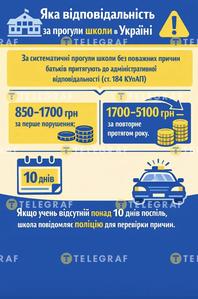 Подробнее читайте в материале: "Штраф 5100 грн за прогулы в школе: родителям объяснили, как считать пропуски детей"