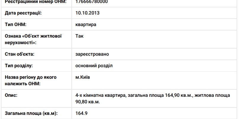 Также на жену Коростелева оформлено несколько объектов недвижимости в Киеве. В частности, накануне увольнения своего мужа, в 2021-м, женщина стала владелицей четырехкомнатной квартиры площадью 164,9 кв. м в ЖК "Діамант". Сейчас квадратный метр там стоит около 2,5—3 тыс. долларов. Стоимость квартирі такой площади — более 412 тыс. долларов (18,1 млн. грн. в эквиваленте).