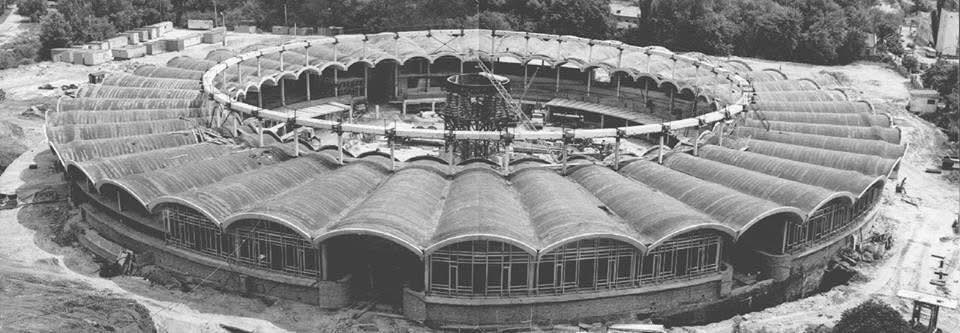 Строительство началось в 1981 году и сопровождалось техническими сложностями. Железобетонные элементы крыши весом около 39 тонн невозможно было изготовить на местных заводах из-за отсутствия необходимого оборудования и транспорта. Поэтому на строительной площадке создали специальную пропарочную камеру, где и производили эти конструкции, после чего устанавливали их с помощью кранов.