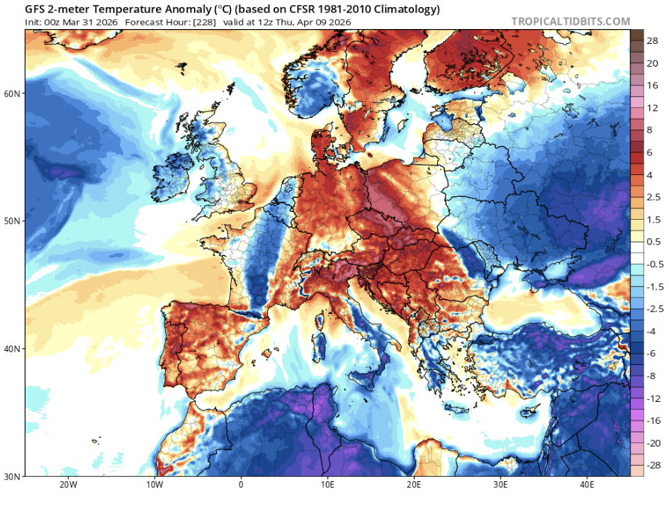 С 9 апреля состоится вторжение холодной воздушной массы с севера Европы, что приведет к понижению температуры на Левобережье Украины. В то же время на Закарпатье и крайнем западе похолодание будет практически незаметным. Таким образом, 9 и 10 апреля в восточных, северных и центральных регионах ночью будут наблюдаться заморозки при температуре 0…-3 °С. Днем также ожидается достаточно холодная погода – лишь +4…+9°С. В западных и юго-западных регионах общий температурный фон окажется несколько выше – в ночное время около +2…+8 °С, днем ​​+10…+17 °С.