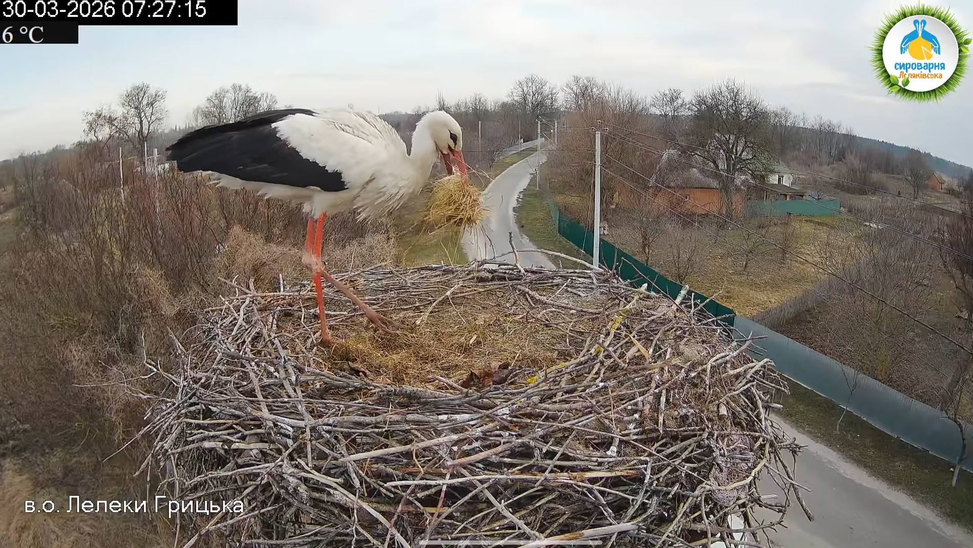 Как сообщает исследовательница птиц Ирина Саражинская, и.о. Грицика радует не только своей настойчивостью, но и сноровкой. Ведь он приносит в гнездо действительно качественные материалы: ветки, сено, солому и т.д.
