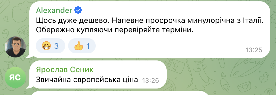 • Что-то очень дешево. Наверное, просрочка прошлогодняя из Италии. Осторожно, покупая проверяйте сроки.