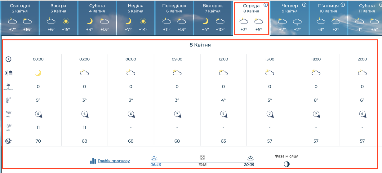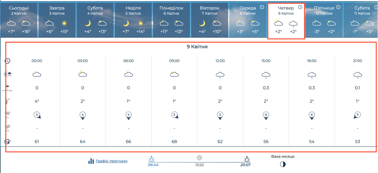 Наиболее критическое ухудшение погоды прогнозируют на четверг, 9 апреля. Днем не превысит +2°C, а во второй половине дня ожидаются осадки в виде мокрого снега. Ситуацию усложнит порывистый ветер, скорость которого будет достигать 5-6 м/с.
