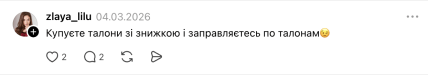 В комментариях украинцы также делились своими лайфхаками и советами, как сэкономить на заправке. Кто-то советовал покупать талоны со скидками и пользоваться ими. Люди писали: