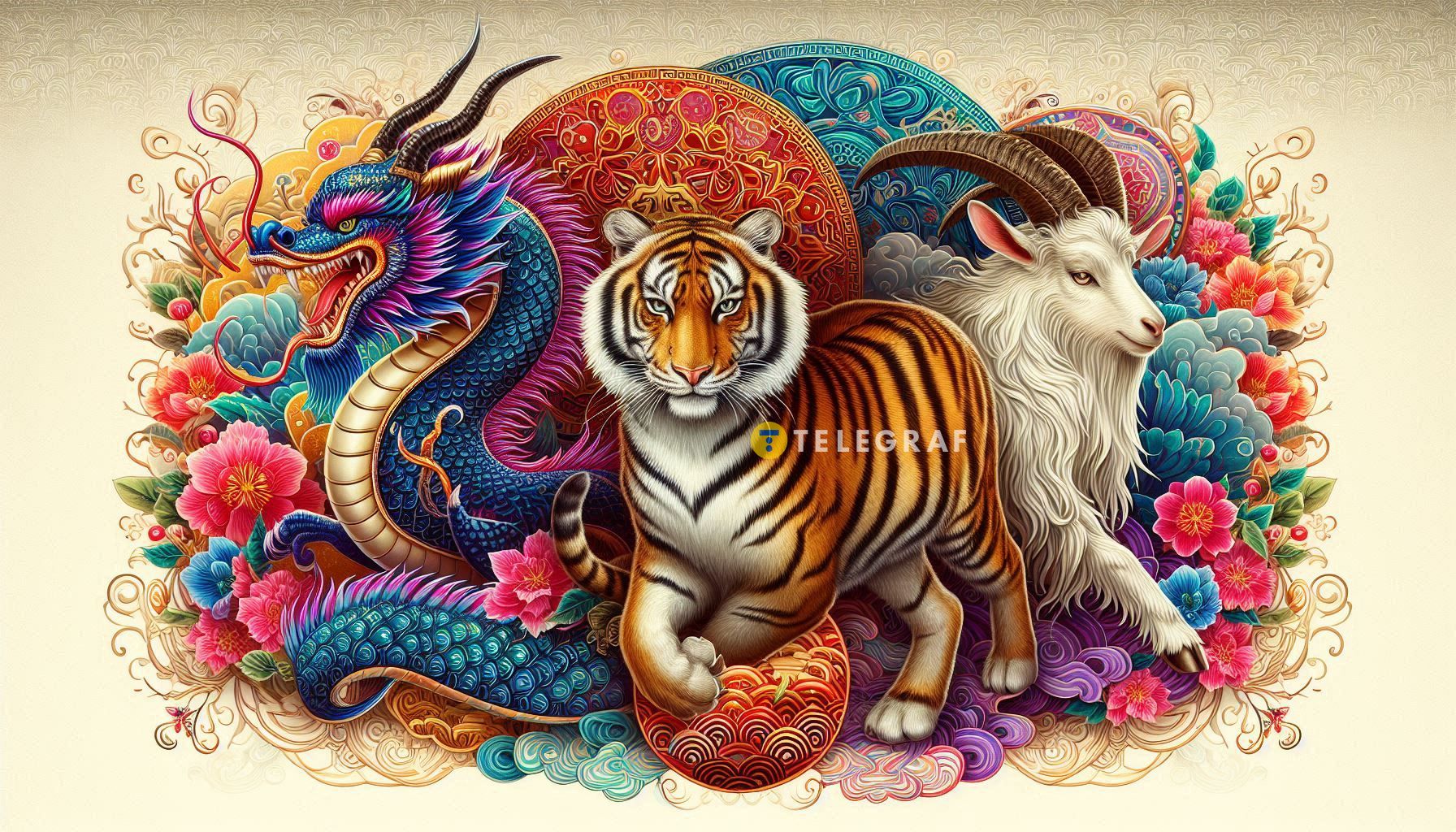 Дракон, Тигр и Коза. Фото Сгенерировано ИИ ("Телеграф")