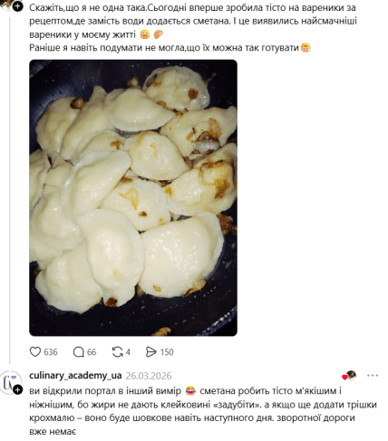 То, что годами готовилось "по классике", вдруг обретает новое звучание благодаря простой, но неожиданной детали. Именно так произошло и с традиционным тестом для вареников — блюда, которое для многих является символом домашнего уюта и вкуса детства. Секретами поделились на threads-странице "culinary_academy_ua".