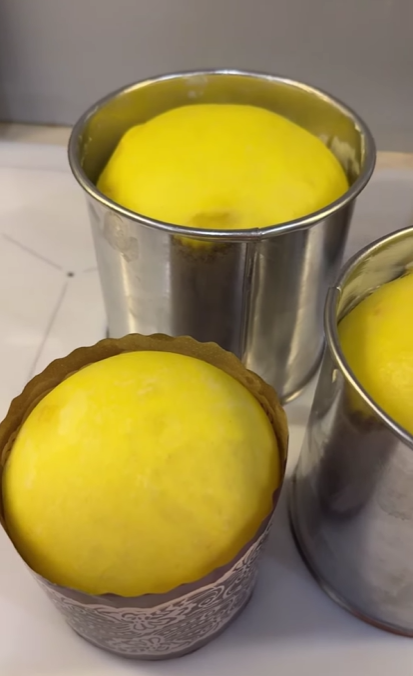 Формы смажьте маслом. Выложите тесто, заполняя 1/3 формы. Дайте тесту подняться почти до краев формы.