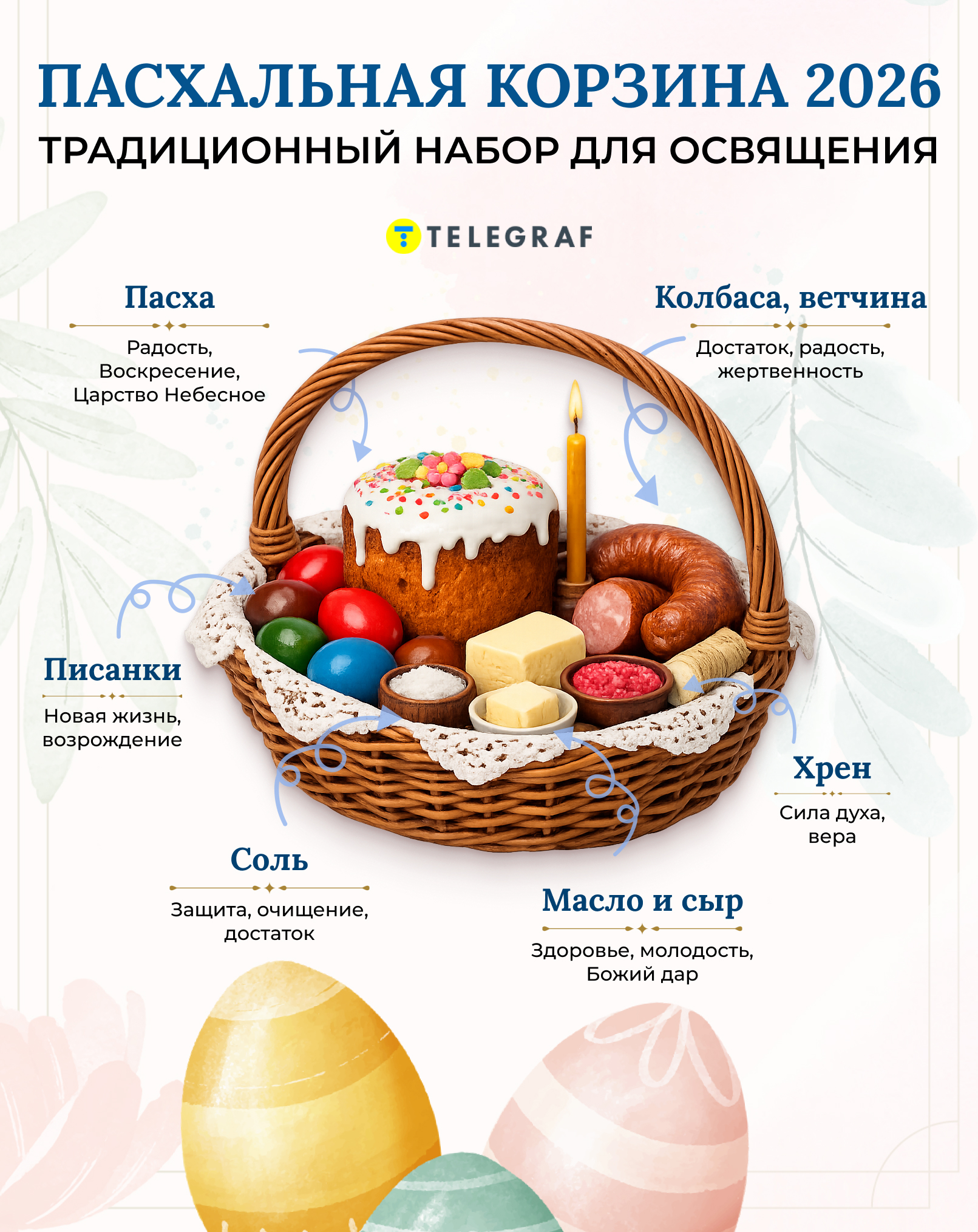 Что входит в пасхальную корзину. Фото: инфографика "Телеграфа"