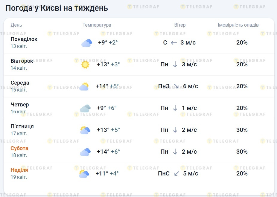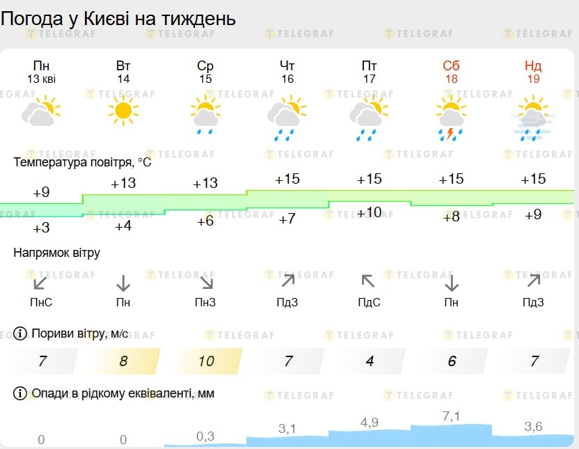 По данным, холодная волна, держащаяся на Пасху, отступает, и воздух становится значительно мягче. После 13 апреля дневные температуры будут стабильно расти — от 13 до 15 градусов тепла, а ночью ожидается от +3 до +10 градусов.