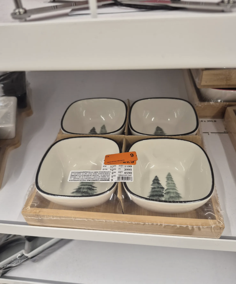 На фото, которые прикреплены к сообщению, видно, что действительно немало рождественской посуды продают за 9 грн. На некоторых позициях даже остались старые ценники, например тарелки в виде елки стоили 229 грн, а сейчас всего 9 грн. Отметим, что такие акции женщине удалось ухватить в одном из магазинов в Черкассах.