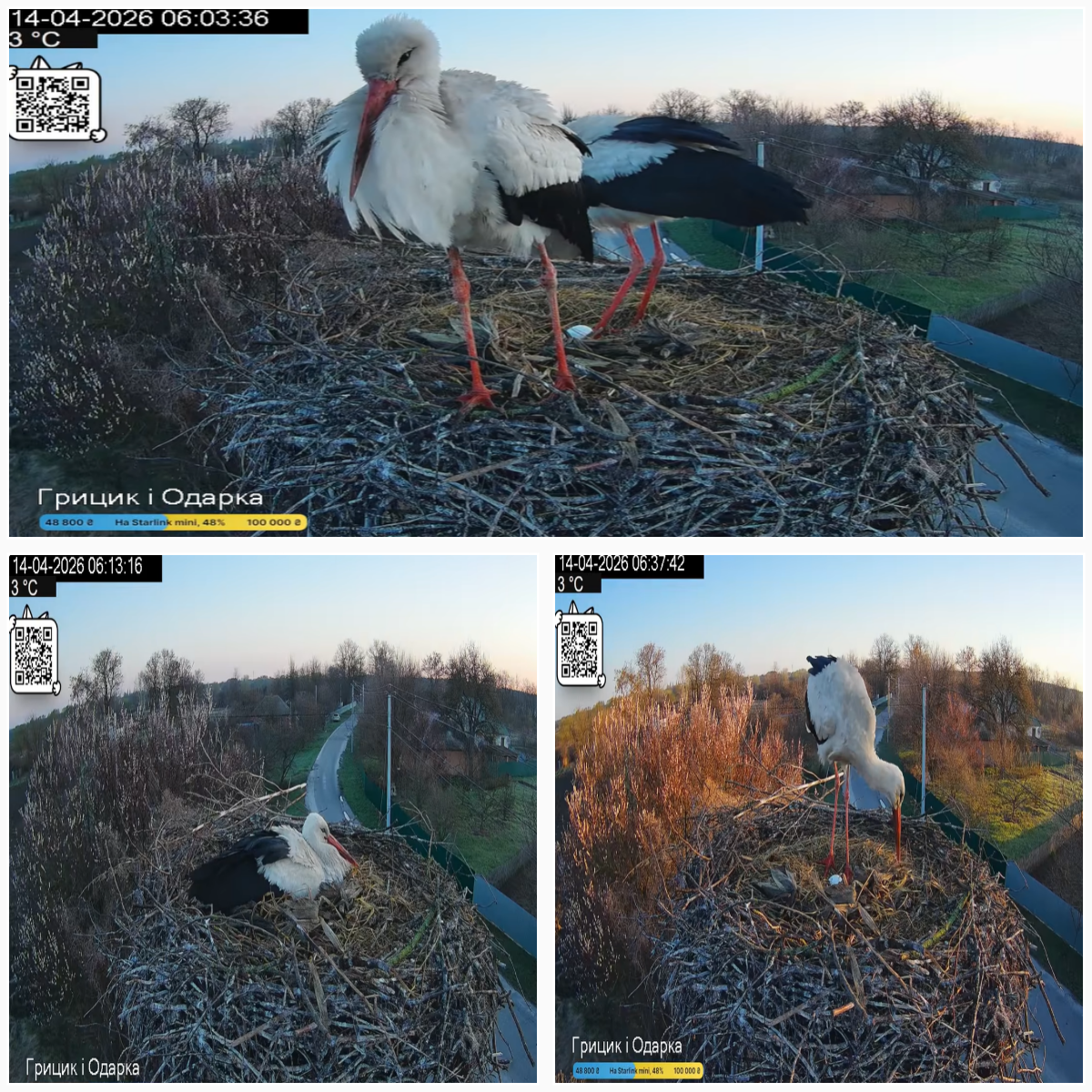 В этом году в гнездо Грицика и Одарки сначала прилетел молодой аист, которого украинцы назвали Лель. Позже к нему присоединилась партнерша — Квитка. Они обустраивали "дом" и спаривались.