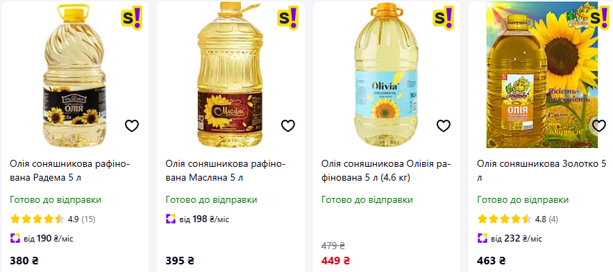 При этом пять литров подсолнечного масла можно купить по цене от 395 гривен. То есть один литр стоит 79 грн – на 13 грн меньше, чем дизельное топливо.