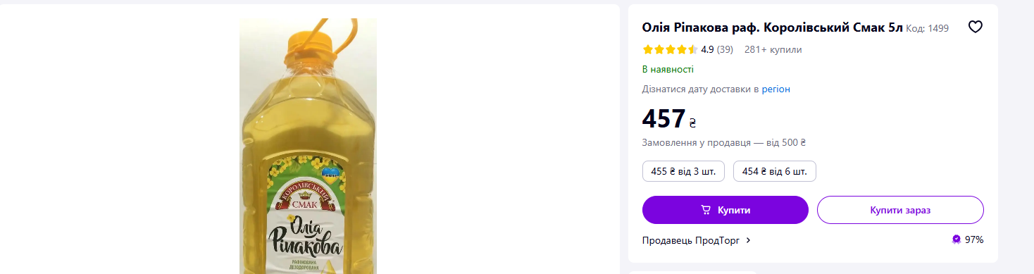 Цены на рапсовое масло в Украине.