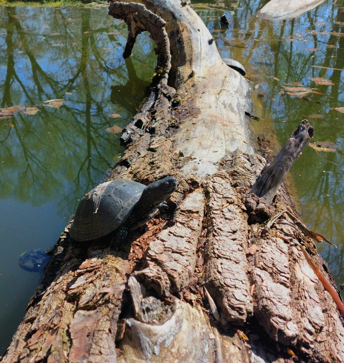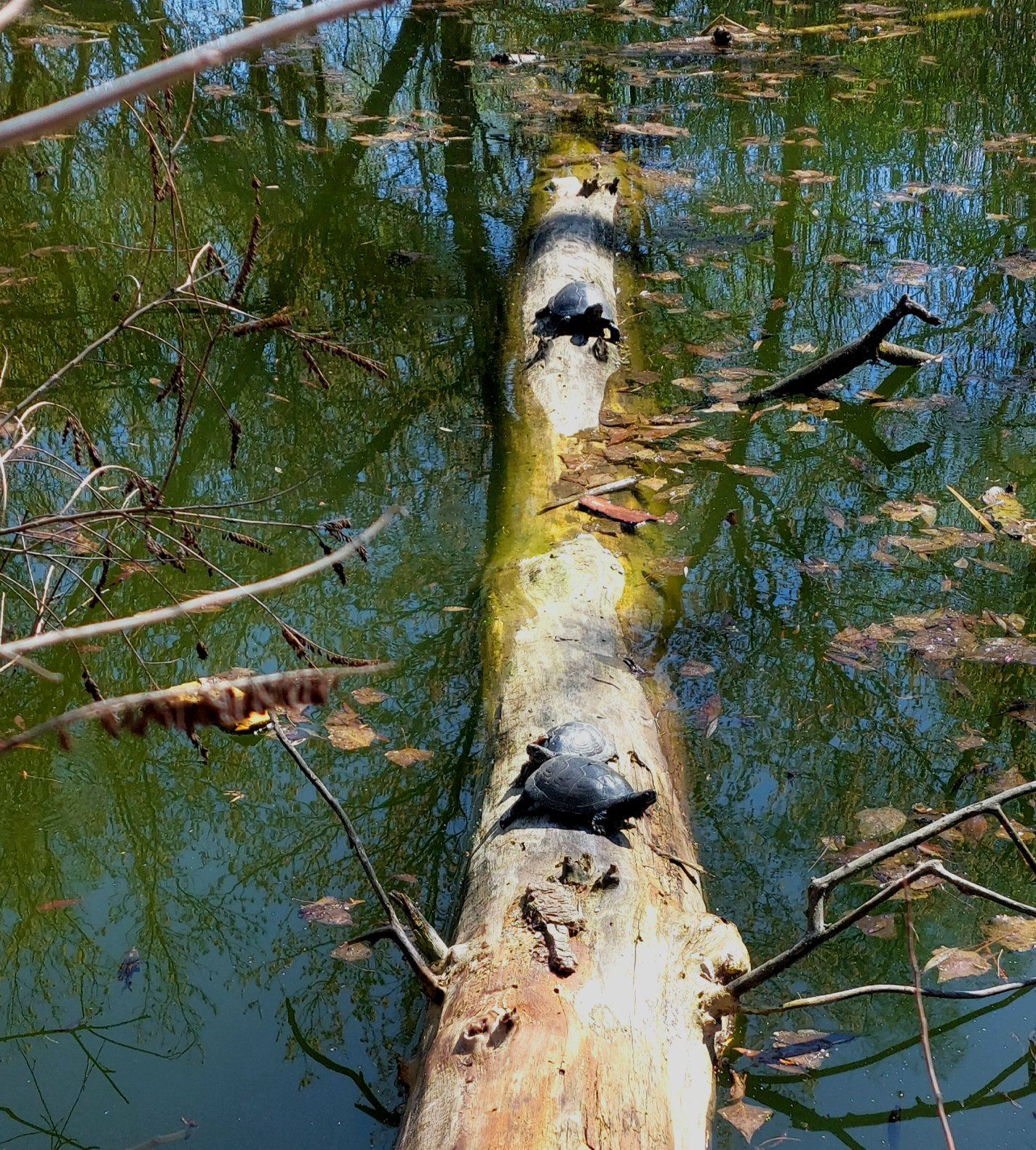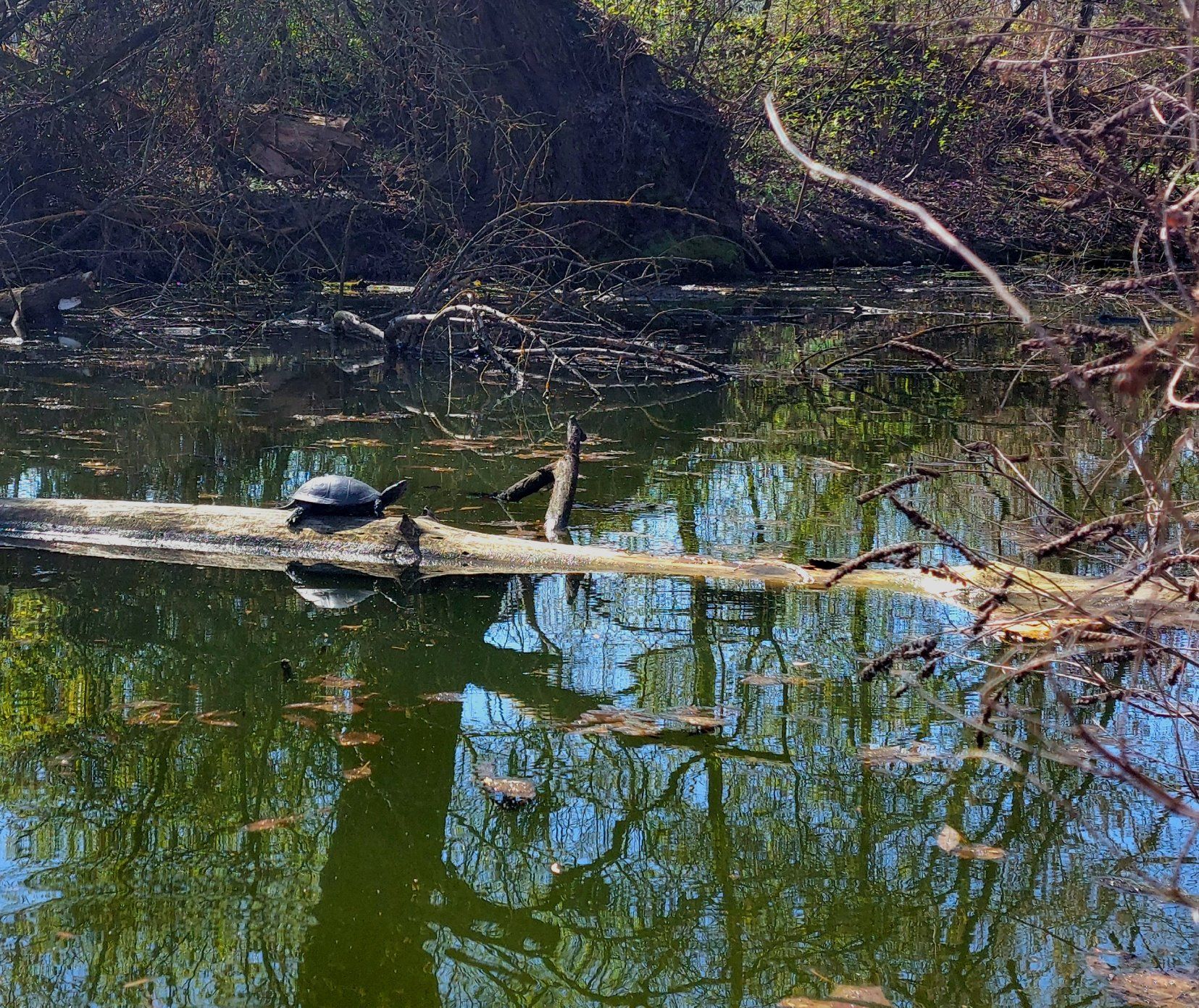 Как отметили пользователи Facebook, черепах заметили 14 апреля во время солнечной погоды. Они вылезли из воды погреться.