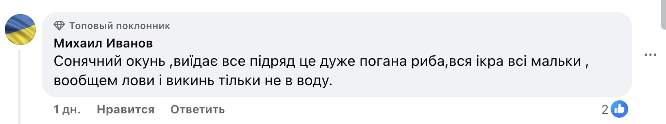 Впрочем, многие пользователи в сети отметили, что этот вид рыбы вредит водоемам, ведь хищник быстро размножается и вредит другим видам. По словам ихтиолога Института зоологии им. И.И. Шмальгаузена НАН Украины Юлии Куцоконь, солнечного окуня называют "мусорной рыбой". Он быстро размножается, поедает икру других рыб и может вредить рыбному хозяйству.
