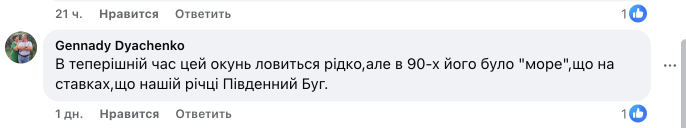 • В настоящее время этот окунь ловится редко, но в 90-х его было "море" на прудах, что нашей реке Южный Буг.