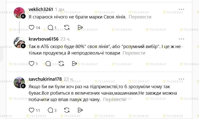 В то же время другая часть пользователей отнеслась к ситуации посерьезнее. Они отмечают, что под брендом собственной торговой марки "Своя Линия" сети "АТБ" качество продукции не всегда получает положительные отзывы, поэтому подобные инциденты нельзя полностью исключать.
