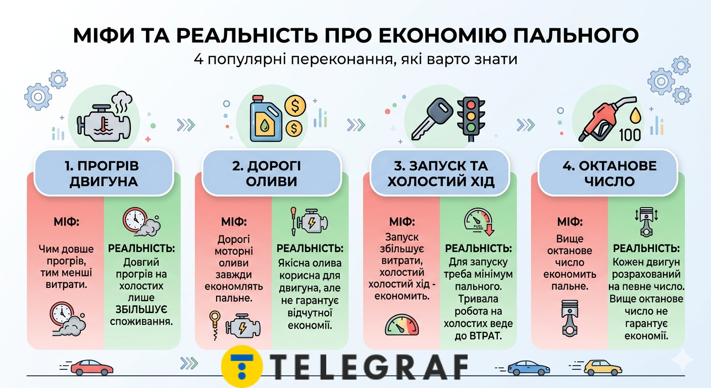 Мифы и факты об экономии топлива. Инфографика создана ИИ