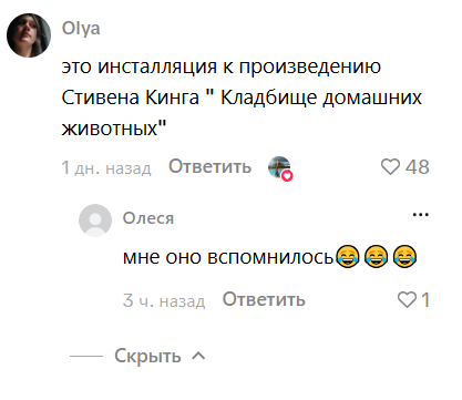 "Это инсталляция к произведению Стивена Кинга "Кладбище домашних животных", – отметила одна из подписчиц.