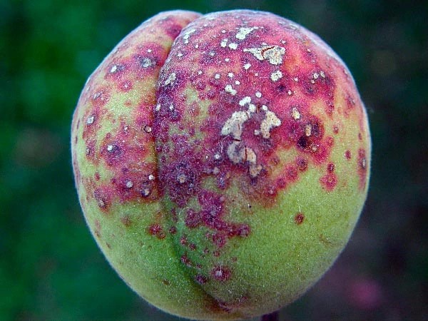 Узнается по белому мучнистому налету на побегах и плодах. Чтобы побороть это заболевание, следует обрабатывать абрикос во время полного цветения и до затвердевания косточки. Если в прошлых годах была проблема с мучнистой росой, лучше сделать две-три обработки с разрывом в 7-12 дней.
