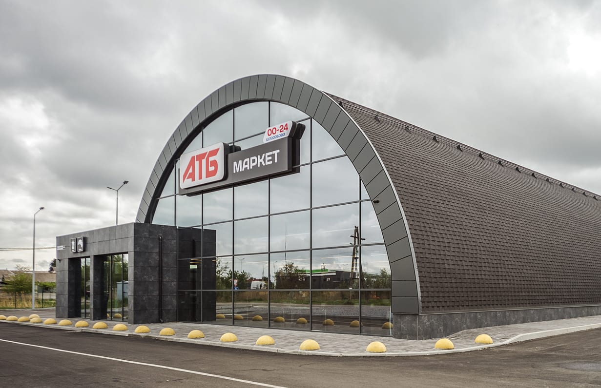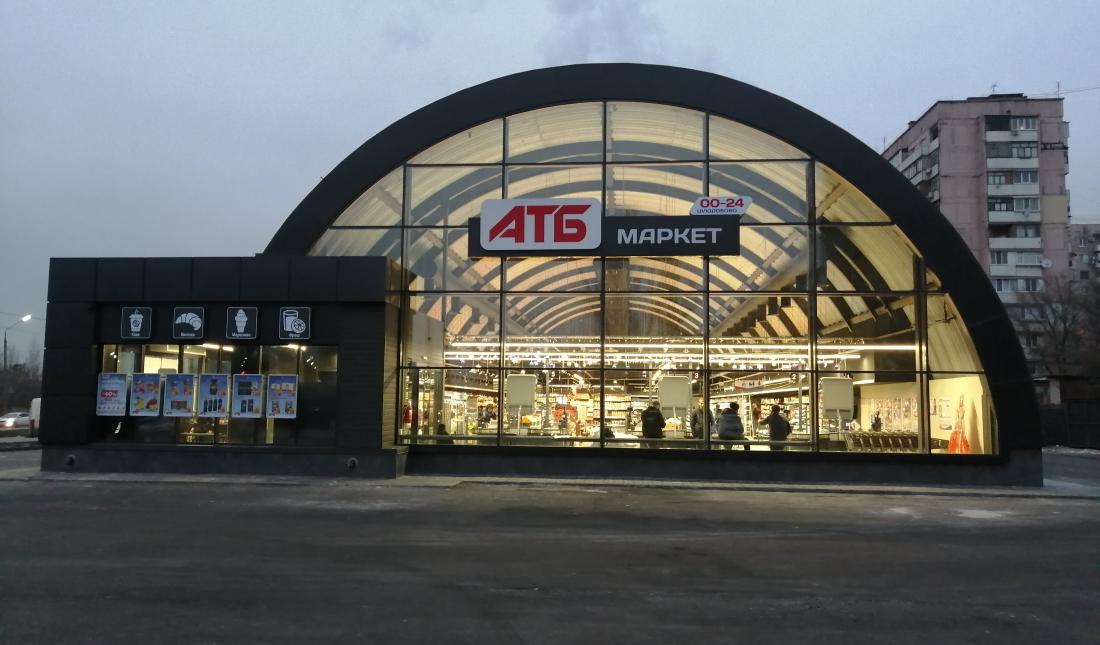 В 2020 году супермаркет "АТБ" в виде огромной арки открылся в Днепре по улице Широкая. Конструкция позволяет значительно увеличить пространство и обеспечить чистый воздух. Новейшая система вентиляции создает идеальный микроклимат в помещении магазина, контролируя влажность, температуру и чистоту воздуха.
