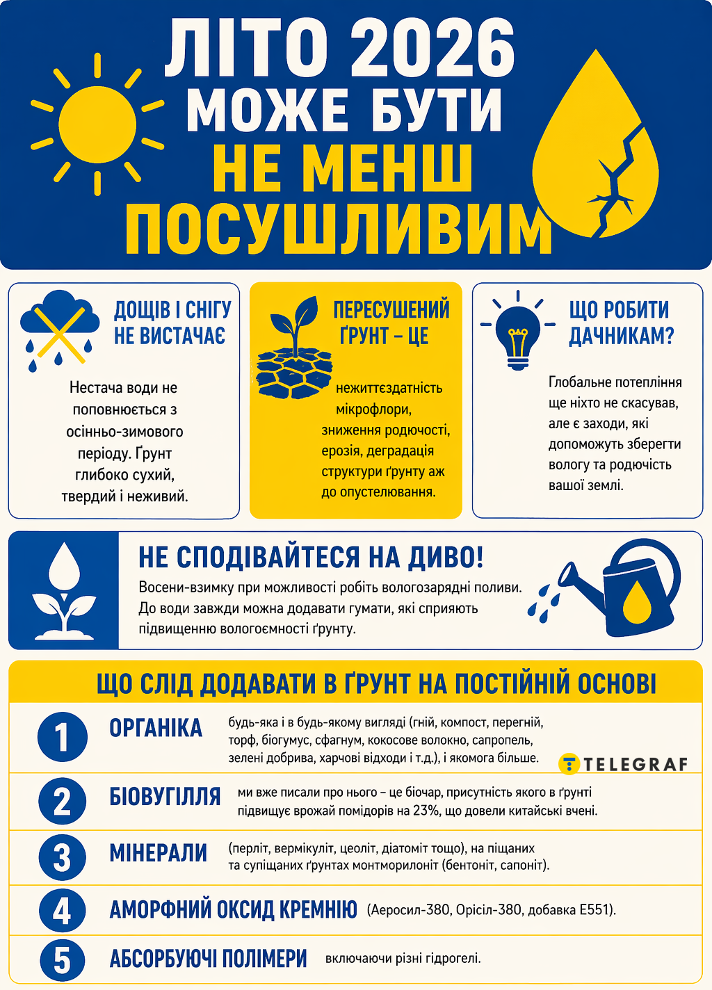 Прошлым летом в Днепропетровской области было почти два месяца полной засухи, когда не выпало практически ни капли воды, так же было и в ряде других регионов. Лето 2026 может быть не менее засушливым.