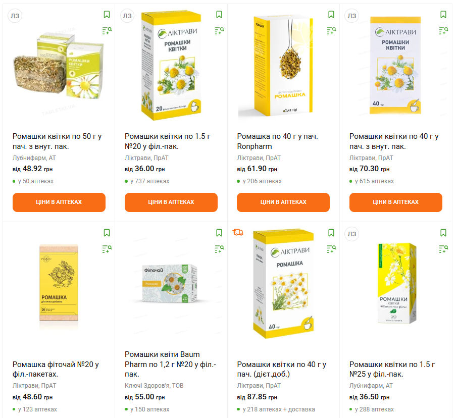 В аптеках тоже можно выбрать сушеную ромашку на любой вкус