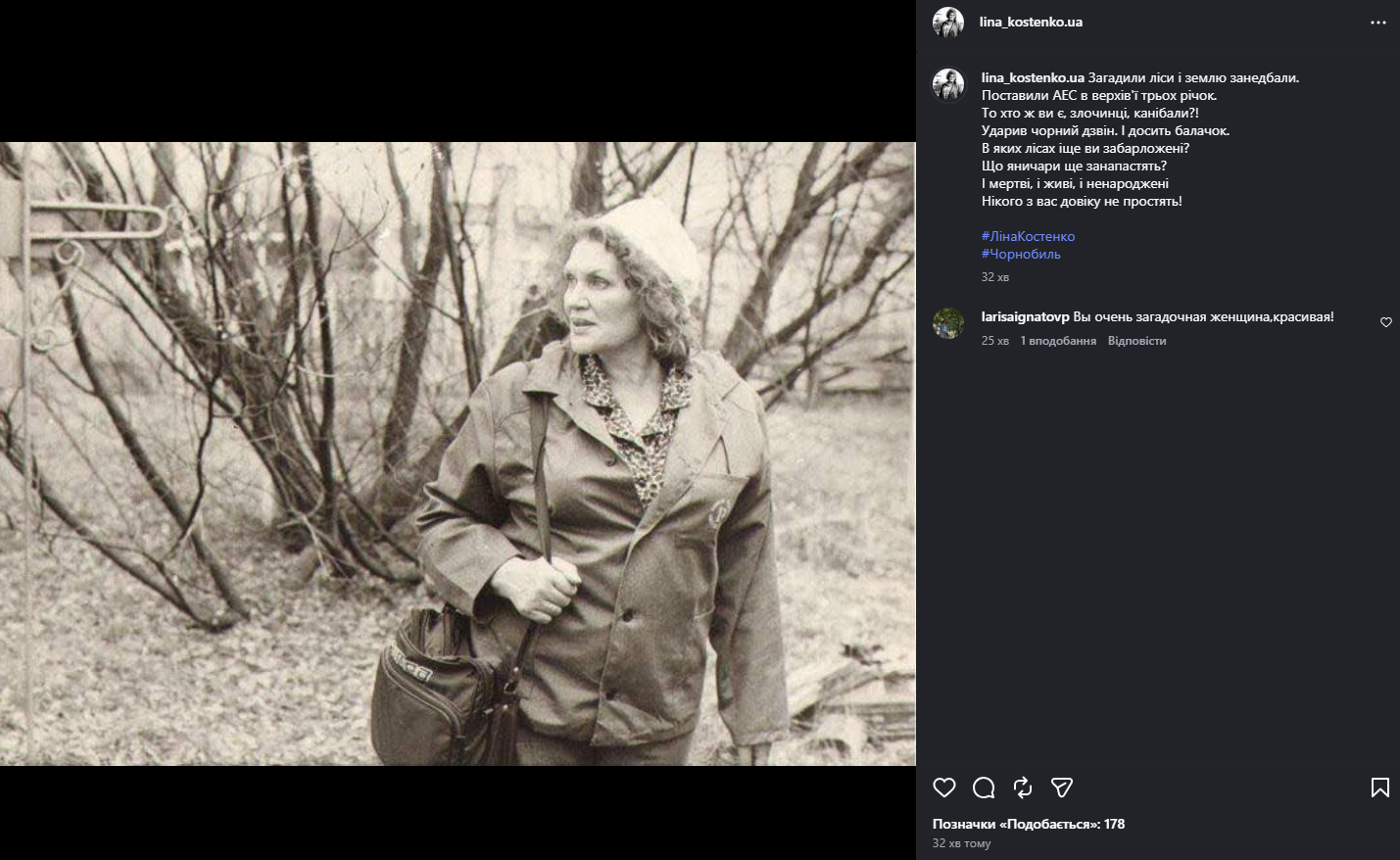 Сегодня, в 40-ю годовщину аварии на Чернобыльской АЭС, легендарная украинская поэтесса Лина Костенко почтила память о трагедии, которая навсегда изменила судьбу Украины.