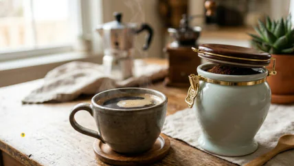 Главное правило — минимизировать контакт кофе с воздухом. После вскрытия упаковки начинается процесс окисления: эфирные масла постепенно разрушаются, и напиток теряет глубину вкуса. Поэтому лучше всего хранить кофе в герметичной емкости и открывать ее как можно реже. Не менее важна стабильная комнатная температура. Кофе быстро портится при сильной жаре, но и холод при высокой влажности тоже портит вкус напитка.