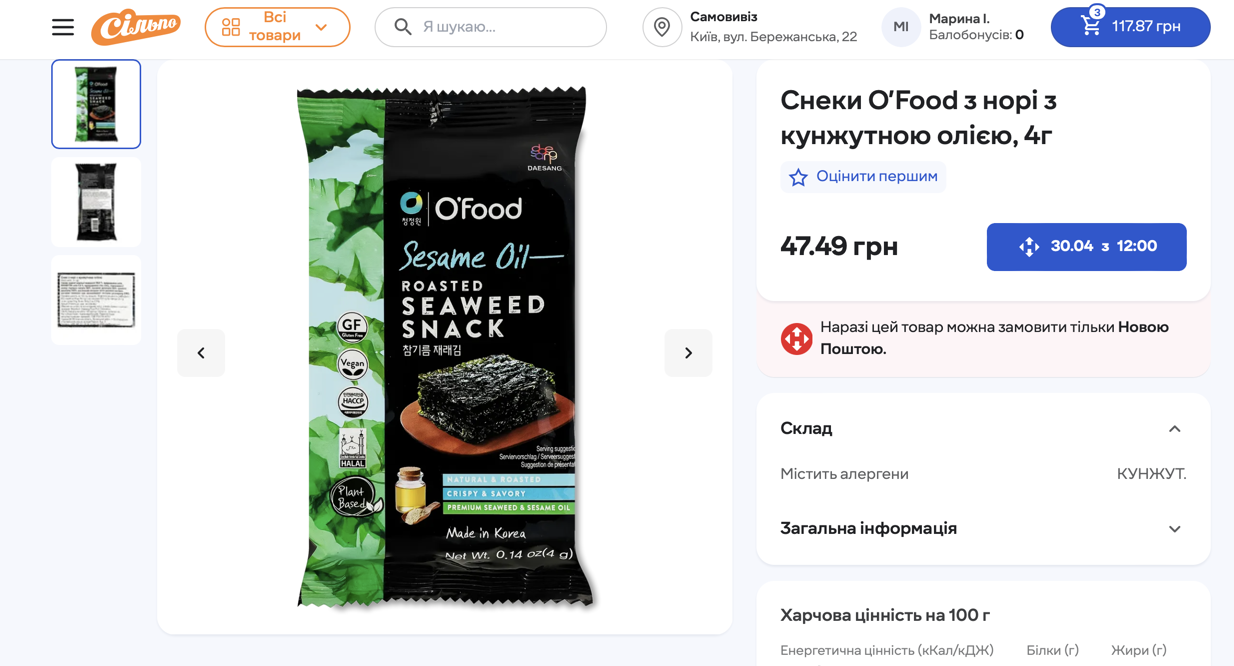Однако ситуация оказалась неоднозначной. При проверке ассортимента на официальном сайте "Сільпо" выяснилось, что цена на этот же товар указана совсем другая — 47,49 грн за пачку 4 грамма.