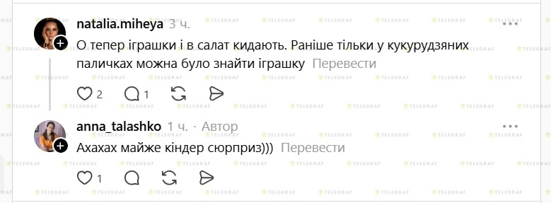 Также появились комментарии о "бонусе к салату" — пользователи шутили, что теперь в блюде "есть белок" или что это "готовый полноценный салат с добавками".