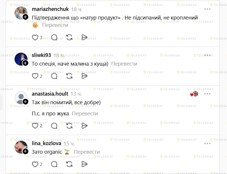 Публикация быстро разошлась по сети и вызвала волну шуток в комментариях. Пользователи с юмором отреагировали на ситуацию, отмечая, что это "точно натур продукт" и "то специя, словно малина из куста".