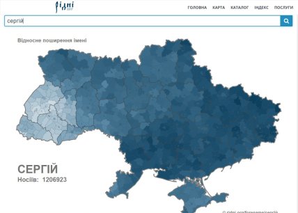 По данным генеалогического портала Рідні (на которые ссылается карта распространения), в Украине насчитывается более 1 206 923 носителей этого имени.