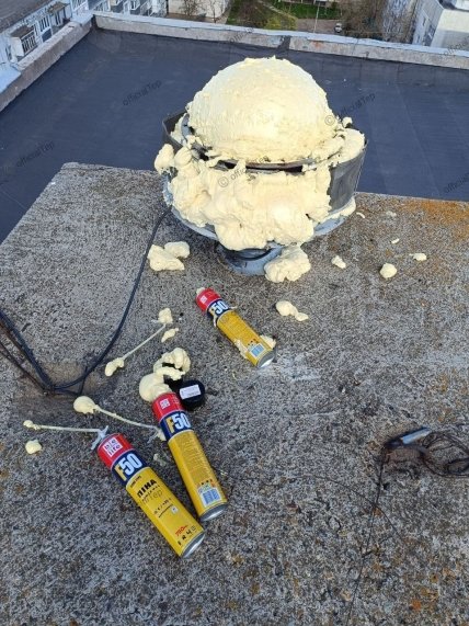 В городе Теплодар Одесской области неизвестные задули монтажной пеной сирену воздушной тревоги на крыше одного из домов. Вероятно, это сделали местные жители, которым мешали громкие звуки.