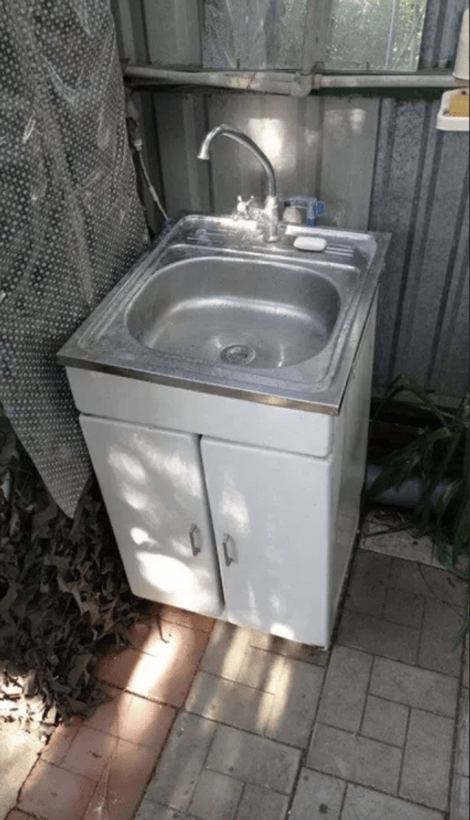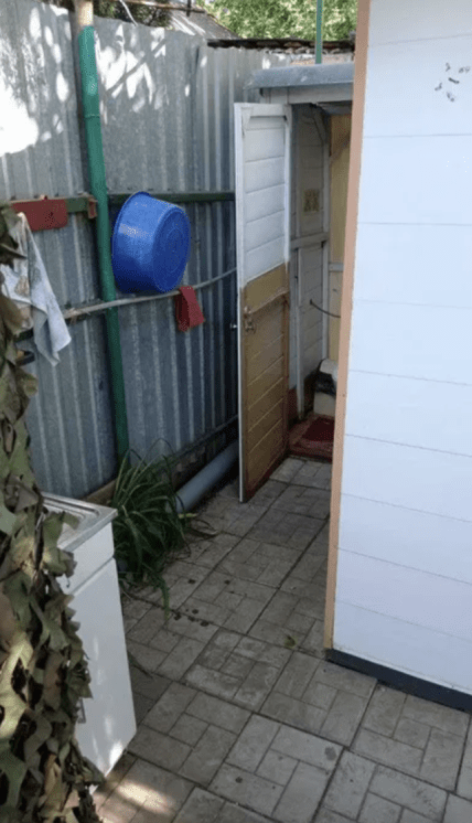 На фото видно, что условия проживания вызывают вопросы. Ведь комнаты очень простые, без окон и со старыми обоями. Имеют небольшой шкаф, стулья и кровать. К слову, постельное белье тоже не новое. Также душ и туалет общие для всех людей проживающих на территории домов. Умывальник стоит прямо на улице, но имеет небольшое зеркало.