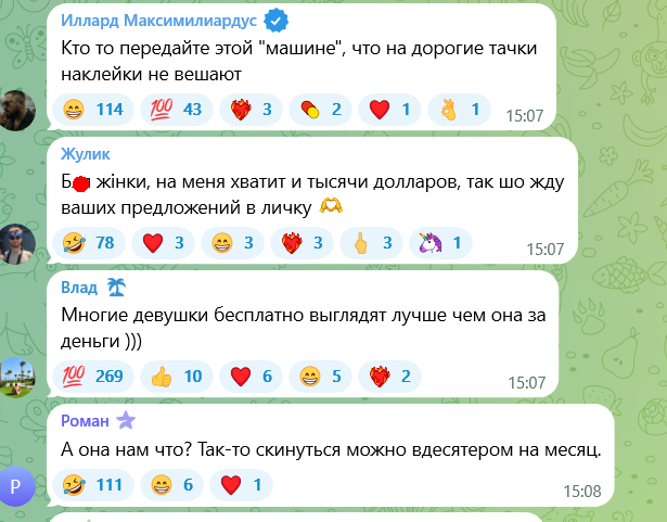 Такой уровень расходов вызвал оживленную реакцию пользователей соцсетей. Под постом начали появляться комментарии от подписчиков, которые высказывали разные мнения. Некоторые считали, что такие расходы чрезмерны и критиковали автора: "Она что, безработная, чтобы так себя содержать?", "Многие девушки выглядят лучше, тратя гораздо меньше". Другие отмечали, что такие цифры не вызывают удивления, ведь каждый имеет право распоряжаться собственными средствами по своему усмотрению.