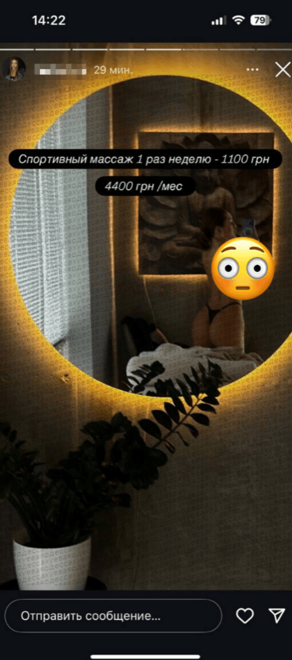 Женщина отметила, что только на спортивное питание и добавки она тратит около 8 000 гривен ежемесячно, хотя точную сумму сложно сосчитать из-за разной продолжительности использования отдельных препаратов. Ежемесячные расходы на продукты достигают примерно 27 000 гривен, в то же время она преимущественно готовит дома и не учитывает расходы на рестораны. Стоимость абонемента в спортзал составляет около 3 300 гривен в месяц, персональные тренировки обходятся в 12 000 гривен, а массаж раз в неделю — 4 400 гривен.