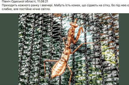 Решил замаскироваться? Богомола с необычной окраской заметили в Одесской области (фото)