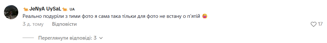 Местные жители признают, что не каждый готов вставать так рано: "Живу всю жизнь в Одессе, ни разу там рассвета не встречала. Да и вообще не понимаю тех, кто сходит с ума от рассветов. Куда приятнее спать". Другие признают, что хоть они и увлекаются фотографиями, сами не готовы жертвовать сном: "Реально пошалили с этими фото, я сама такая, только для фото не встану в пять утра".