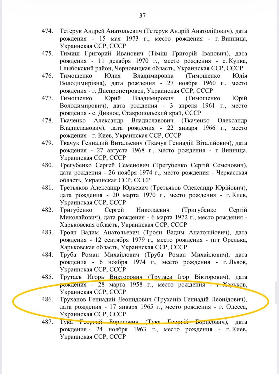 - С 2018 года в России Труханов внесен в санкционные списки как гражданин Украины