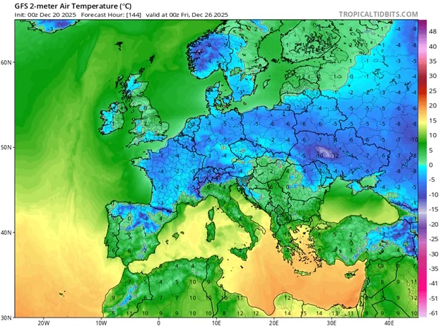 По его словам, все дело в мощном антициклоне со Скандинавского полуострова, который постепенно распространит свое влияние на большую часть Европы и принесет понижение температуры.