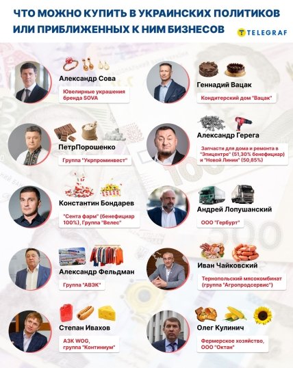 "Телеграф" рассказывает, что именно можно купить у наших политиков (или связанных с ними бизнесов).