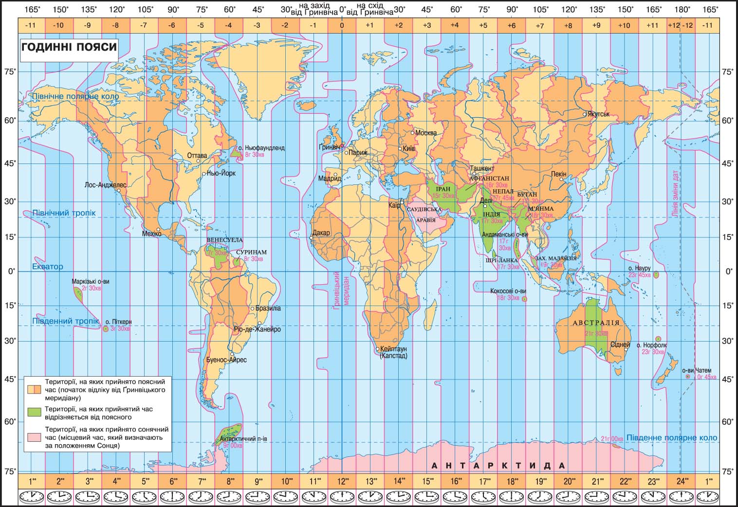 Для наглядного примера демонстрируем карту часовых поясов в мире: