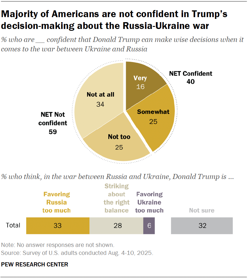 Об этом свидетельствуют данные опроса, проведенного американским Pew Research Center. Опрос проводился в преддверии встречи Трампа и российского правителя Владимира Путина на Аляске.