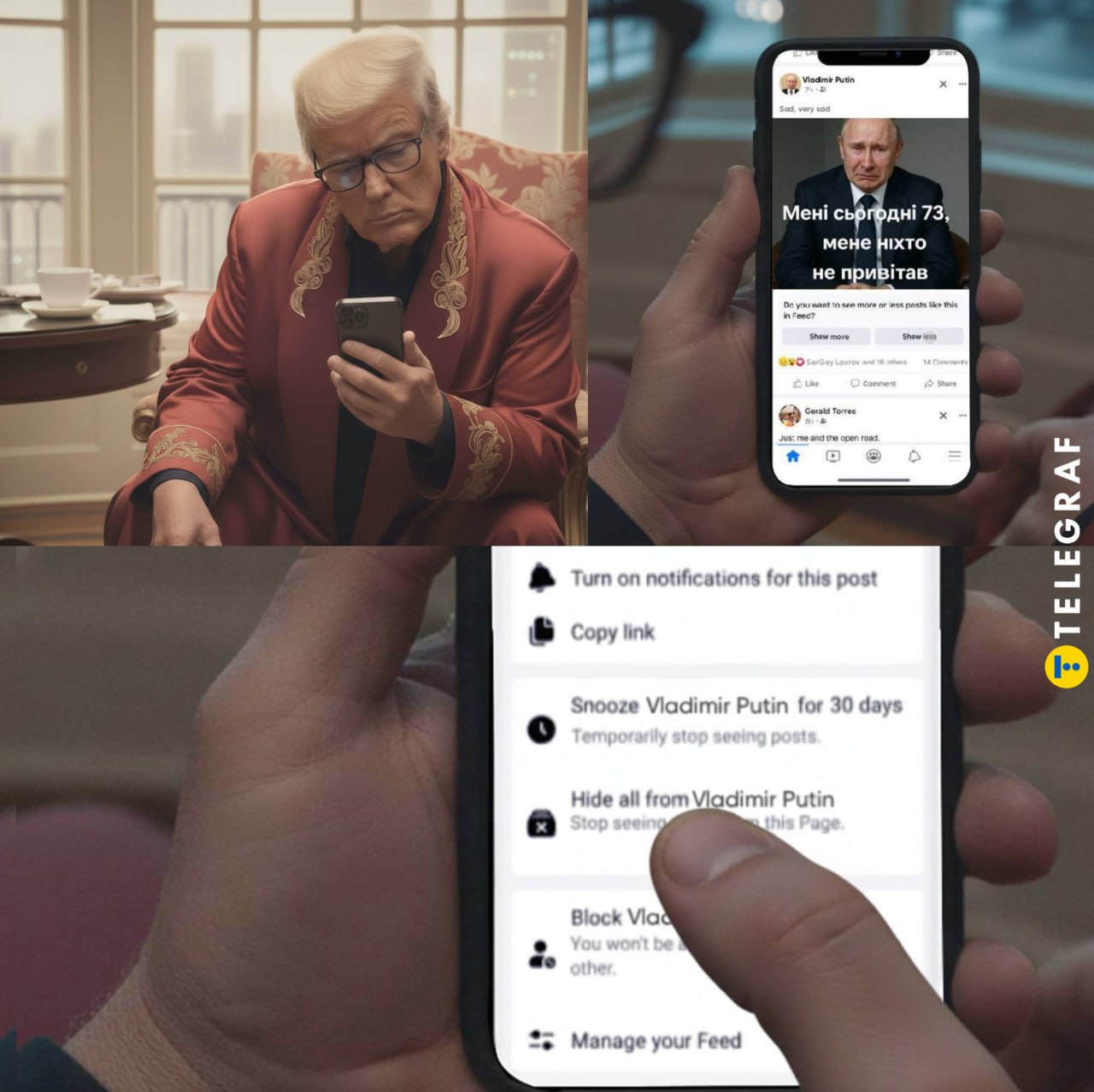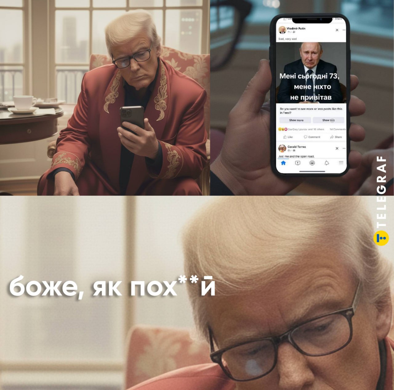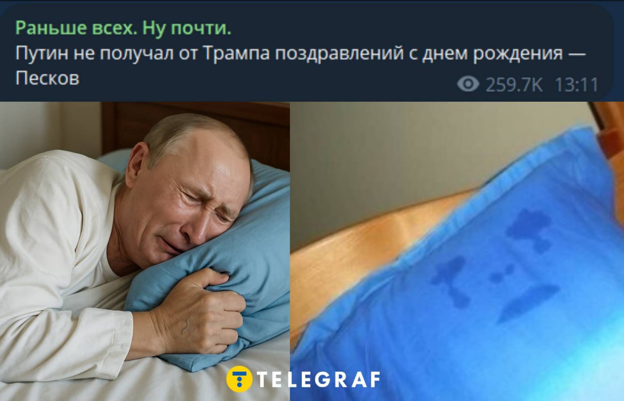 "Телеграф" создал по данному поводу забавные мемы. В них шуточно показана вся боль Путина от того, что Трамп проигнорировал его праздник и не отправил поздравление.