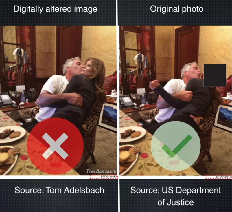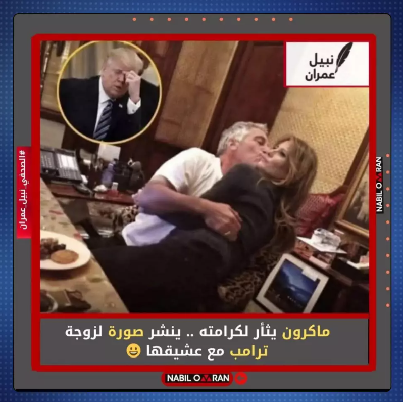 Волна публикаций утверждает, что Макрон "слил" снимок в качестве политической насмешки или доказательства скрытых связей четы Трамп с осужденным за сексуальные преступления бизнесменом.
