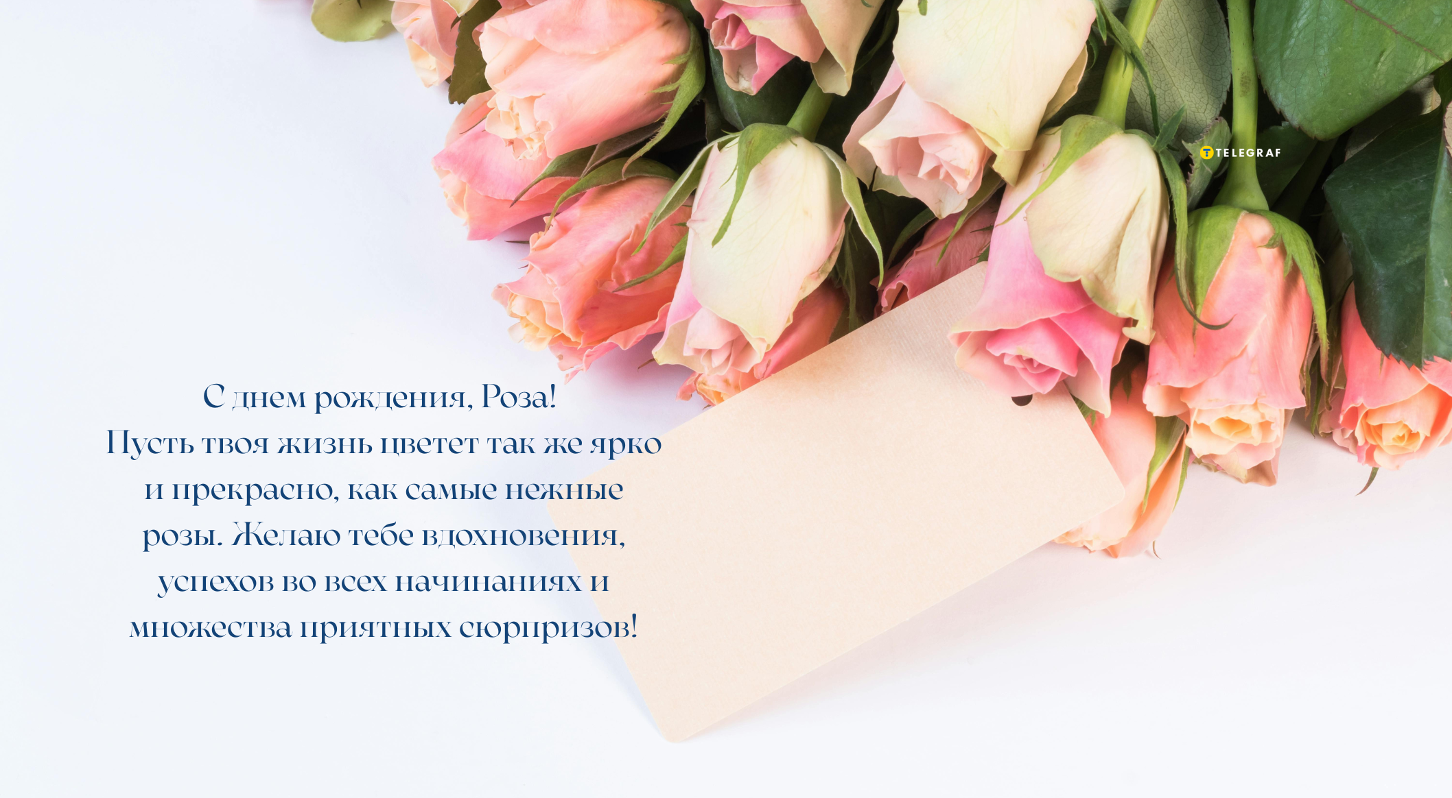 Если в вашем окружении есть Роза, обязательно найдите время, чтобы порадовать ее добрыми словами в день рождения. Пусть ваше поздравление будет таким же теплым и светлым, как сама именинница. А чтобы вам было проще подобрать нужные слова, "Телеграф" подготовил для вас нежные поздравления и открытки, чтобы вы могли поздравить Розу красиво и от всего сердца.